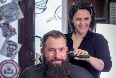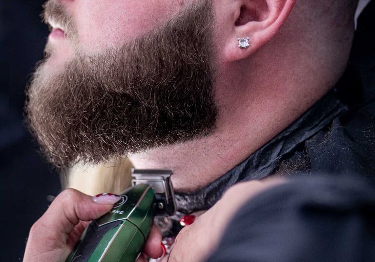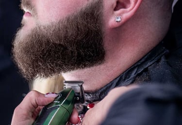 Strzyżenie włosów i brody wraz z farbowaniem brody i pielęgnacją.